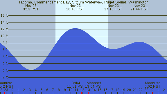 Tidal Heights at Tacoma, Commencement Bay, Sitcum Waterway, Puget Sound, Washington