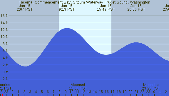 Tidal Heights at Tacoma, Commencement Bay, Sitcum Waterway, Puget Sound, Washington
