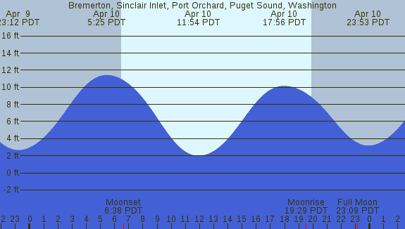 Tidal Heights at Bremerton, Sinclair Inlet, Port Orchard, Puget Sound, Washington