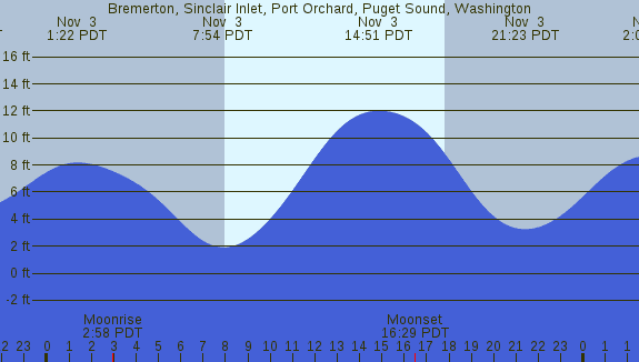 Tidal Heights at Bremerton, Sinclair Inlet, Port Orchard, Puget Sound, Washington