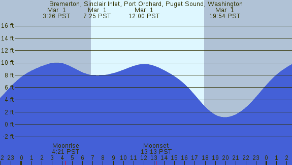 Tidal Heights at Bremerton, Sinclair Inlet, Port Orchard, Puget Sound, Washington