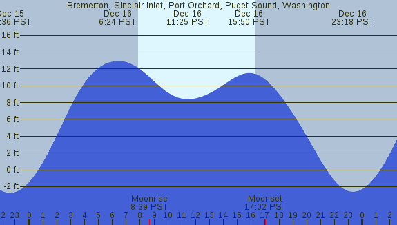 Tidal Heights at Bremerton, Sinclair Inlet, Port Orchard, Puget Sound, Washington